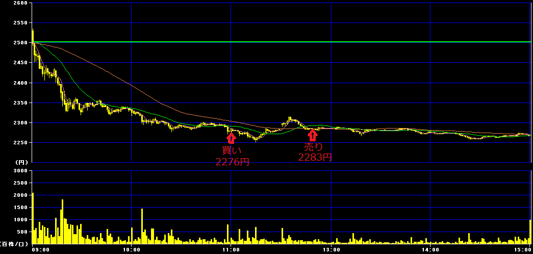 11時00分に2276円で200株購入。後場12時49分に2283円で利確。
