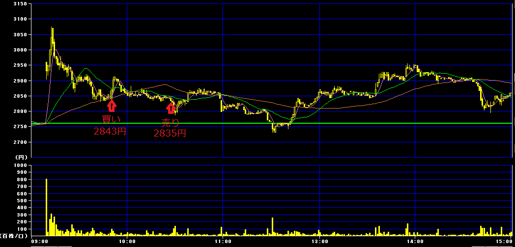 2843円(200株)→2835円