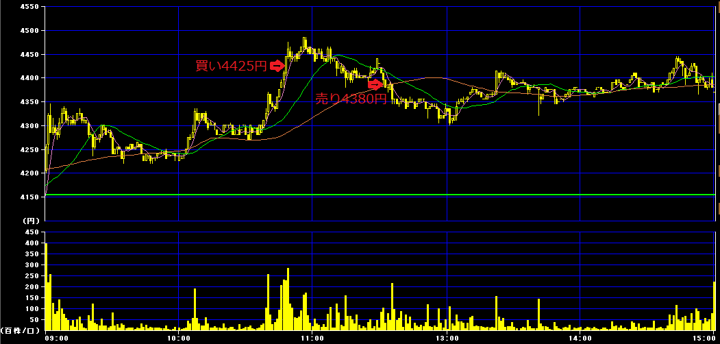 4425円(200株)→4380円
