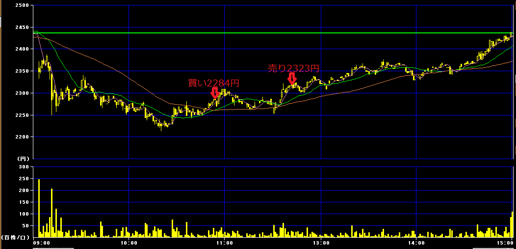 10時53分に2284円で200株買いインし、後場12時41分に2323円で利確。